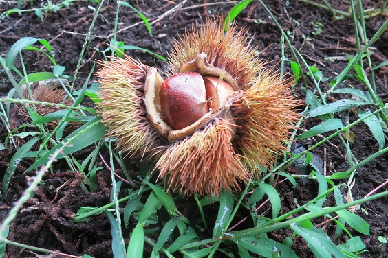 Chestnuts are falling down on the ground for now. They are not so big as usual. Again it should be due to the hot spell. I will be busy cooking rice with chestnuts or sugared chestnuts etc for a while.