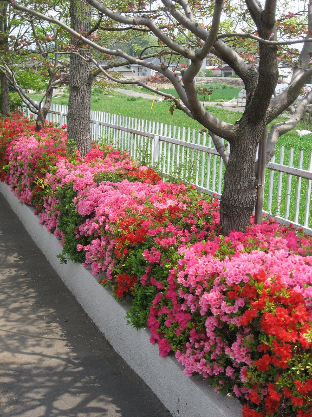 This photo shows the row of azalea about 10 years ago. It bloomed gorgeously.